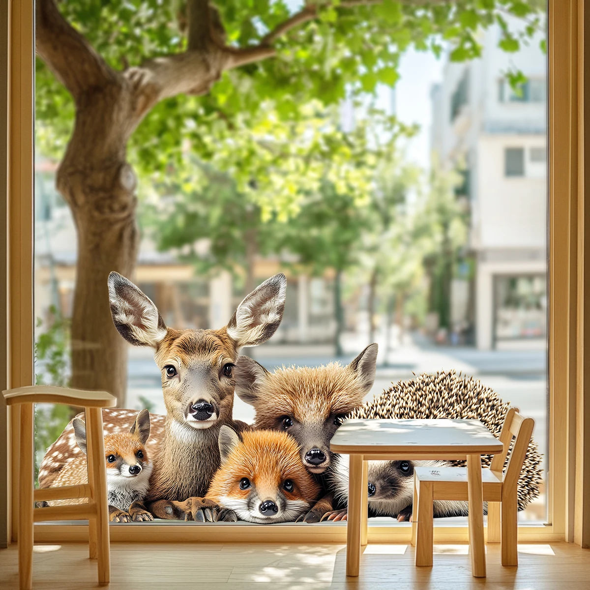 SEO Keywords: transparent animal glass sticker, fox deer hedgehog wall sticker, Purilite Select glass decal, realistic animal window sticker, home décor wall art, waterproof glass decal, living room decoration, bedroom window sticker, transparent wall sticker, removable glass sticker.