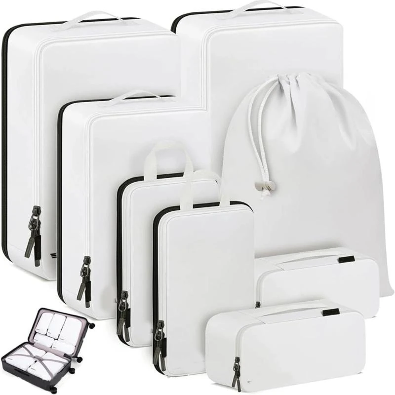 Pack more and stress less with the Purilite Select 10PCS Compression Packing Cubes – a complete, expandable travel organizer set for the smart traveler. This 10-piece kit includes packing cubes in multiple sizes designed to compress clothing, undergarments, shoes, and accessories for neat, space-saving storage in any suitcase. The expandable design with durable double zippers allows you to adjust space as needed, while mesh panels make it easy to see what's inside. Lightweight, foldable, and water-resistant, this set is ideal for long vacations, business trips, or family travel.