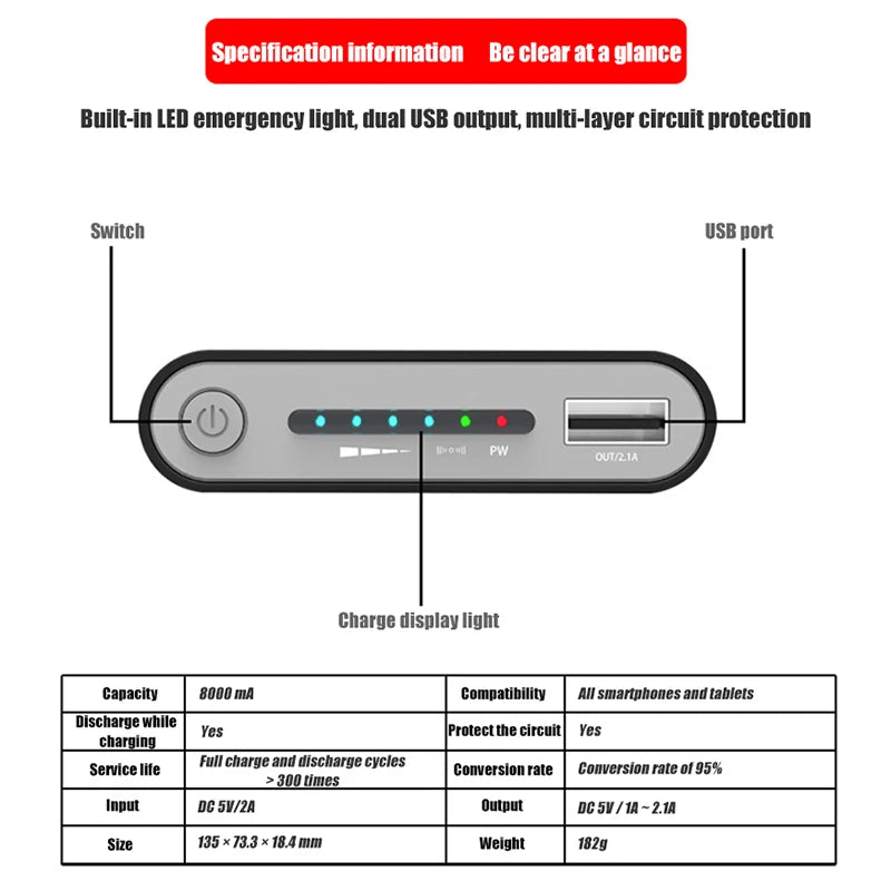 - Features: Portable, Touch Charging, Emergency Power Supply