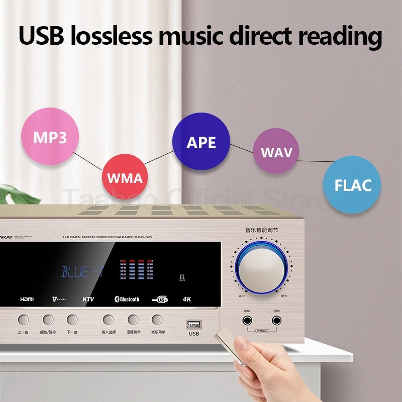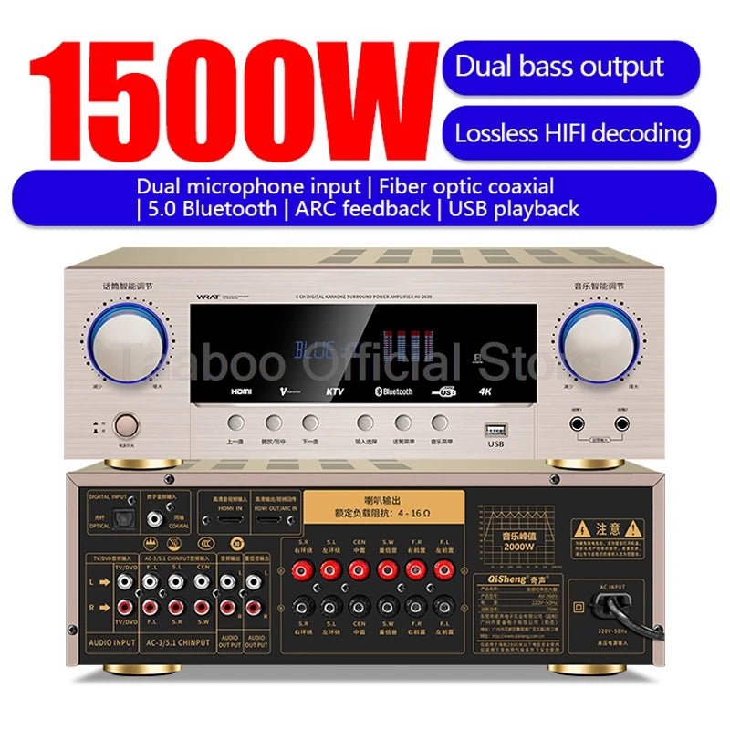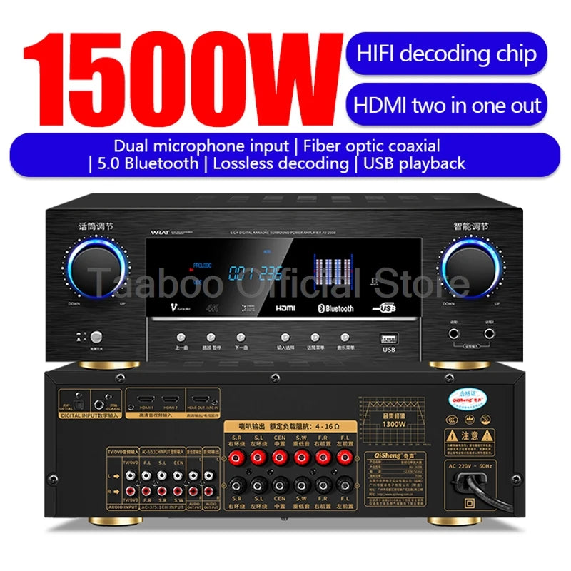 Power up your audio system with the Purilite Select 1500W High Power 5.1 Professional Sound Amplifier. Designed for home use, this multifunction HiFi amplifier delivers crystal-clear, powerful sound for speakers, home theaters, and entertainment setups. With support for Bluetooth, HDMI, and USB, it offers versatile connectivity for music, movies, and gaming, making it an ideal centerpiece for any household audio system.