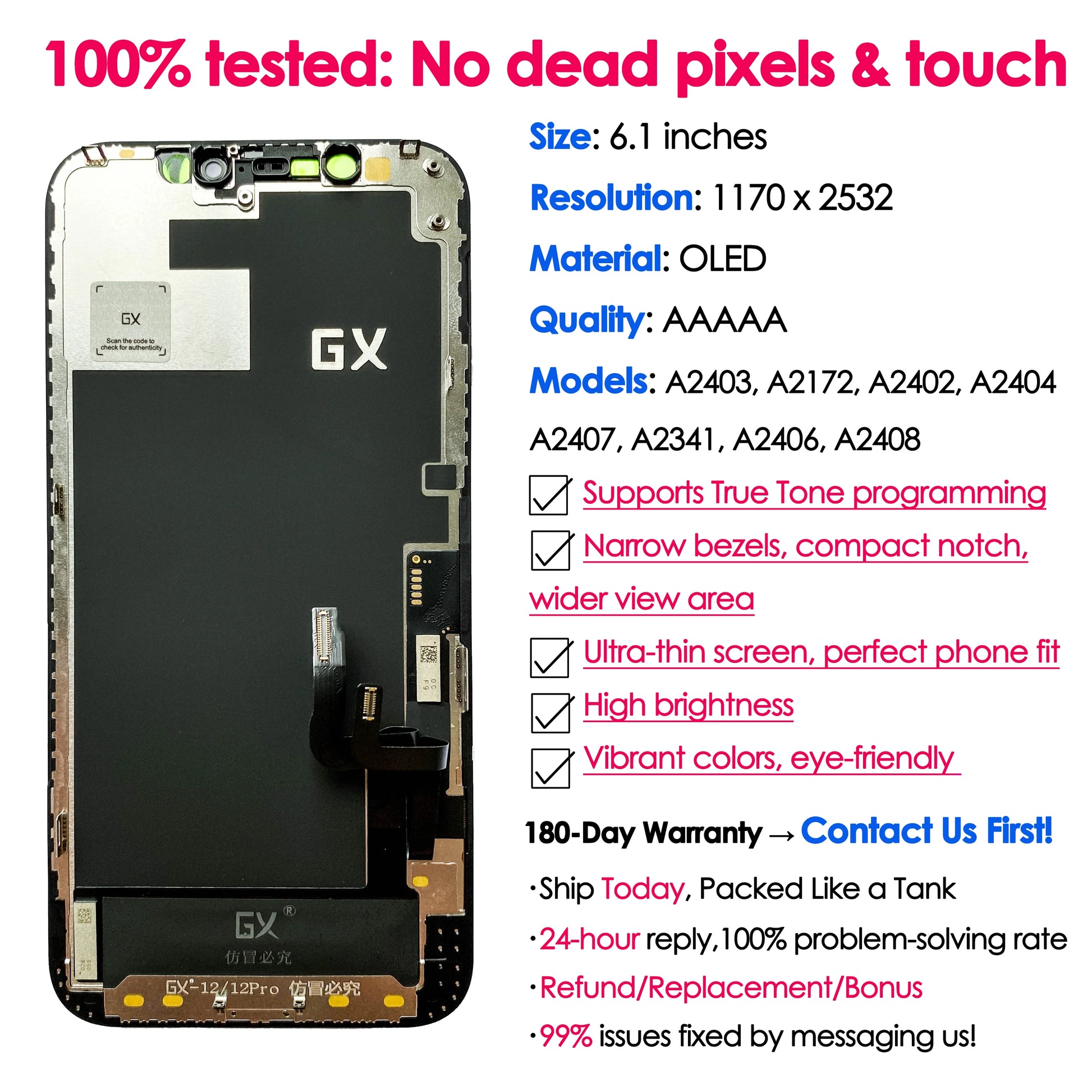 Purilite Select GX OLED Screen Replacement – Compatible with iPhone 12 / 12 Pro, Touch Digitizer Assembly with Repair Kit (180 Days Warranty, Wholesale)