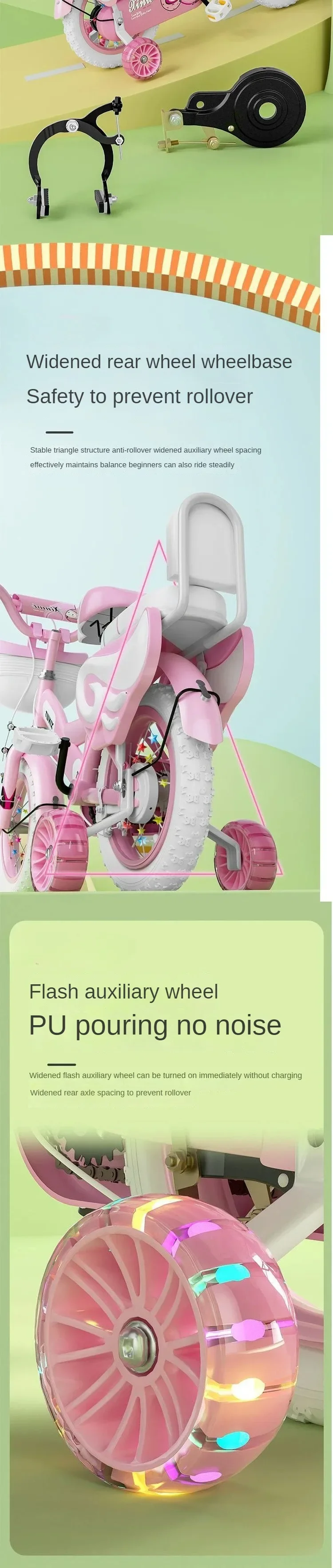 Purilite Select 2–9 Years Old Children’s Folding Bicycle – Adjustable Flash Bike with Auxiliary Wheels for Boys & Girls, Pink