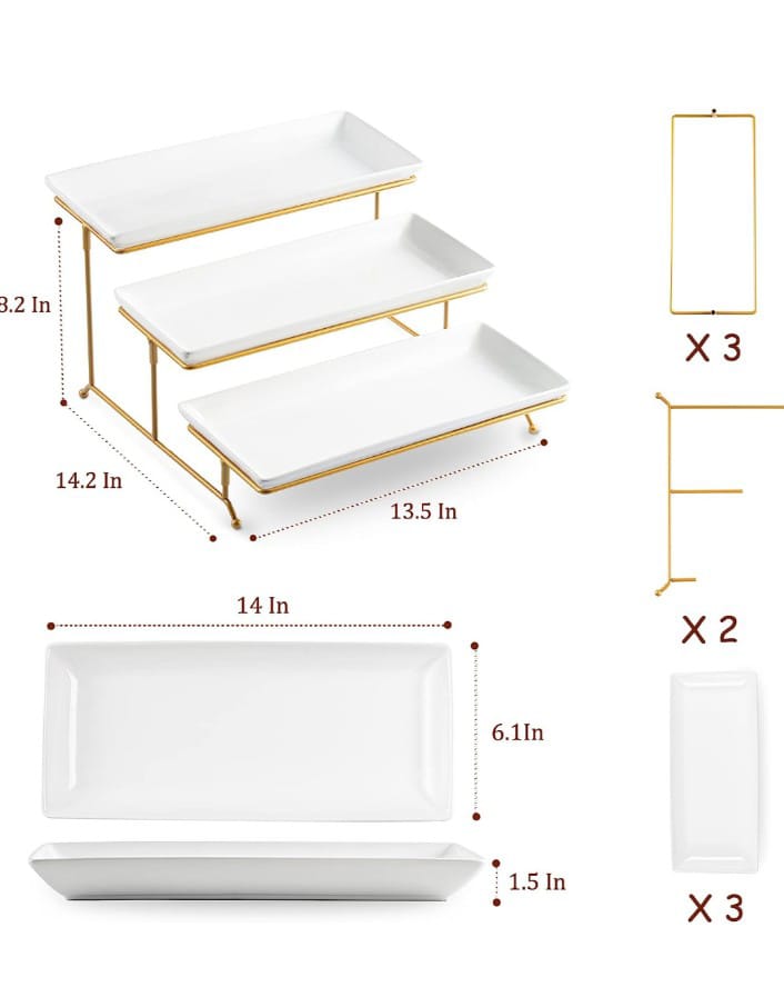 This stylish and multifunctional tiered tray elevates your food presentation while saving space. It's perfect for both formal and casual gatherings, and makes an elegant gift for weddings, birthdays, and housewarmings.