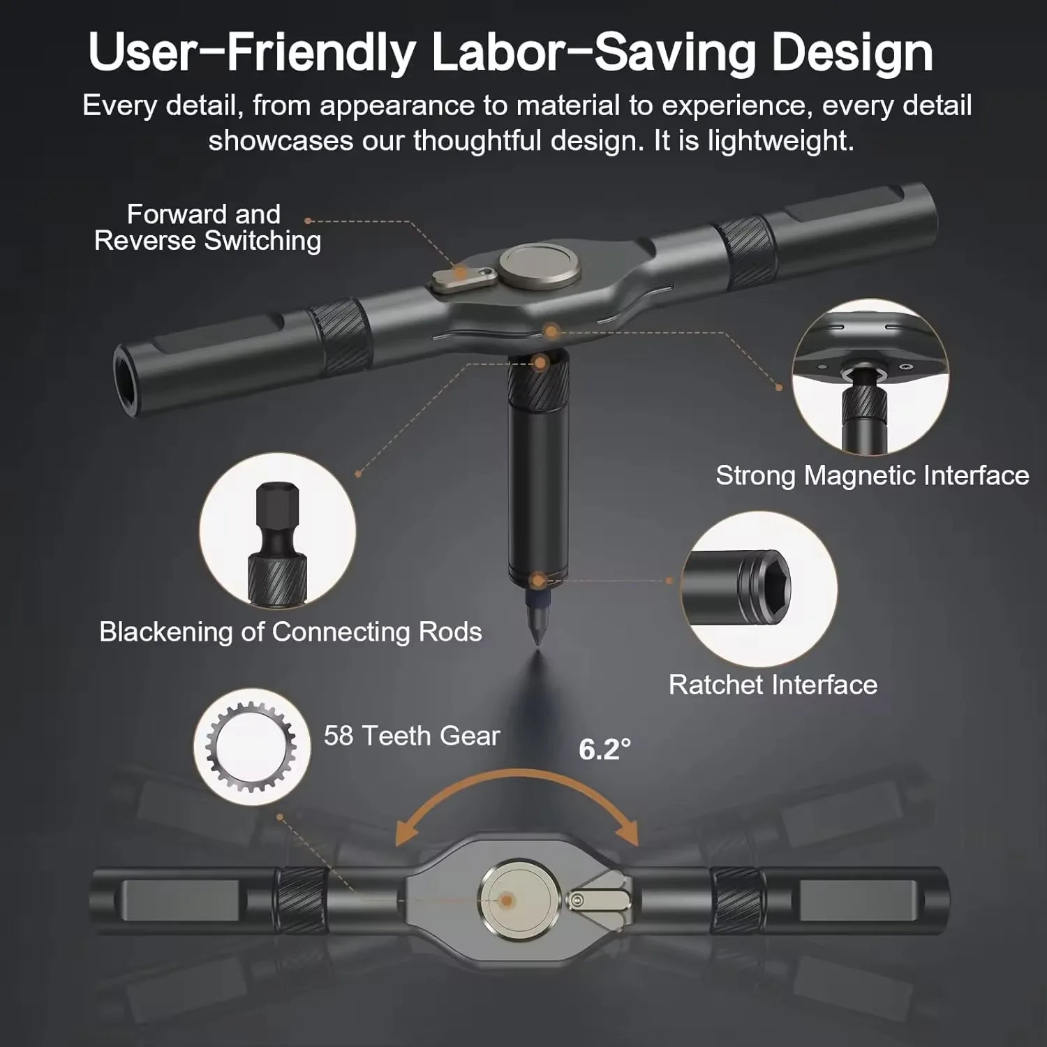 - Flexible Ratchet Design: 6.2° ratchet, 58-speed forward/reverse structure, 50 Nm torque, reduces wrist strain by 80%.