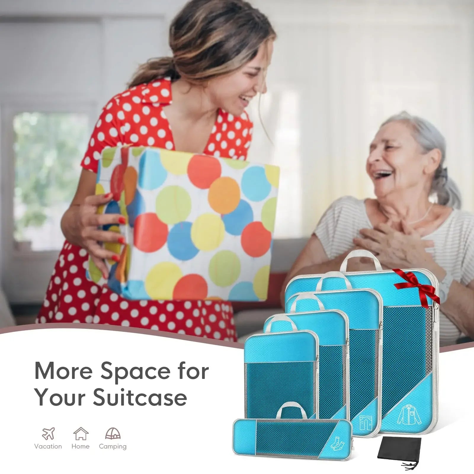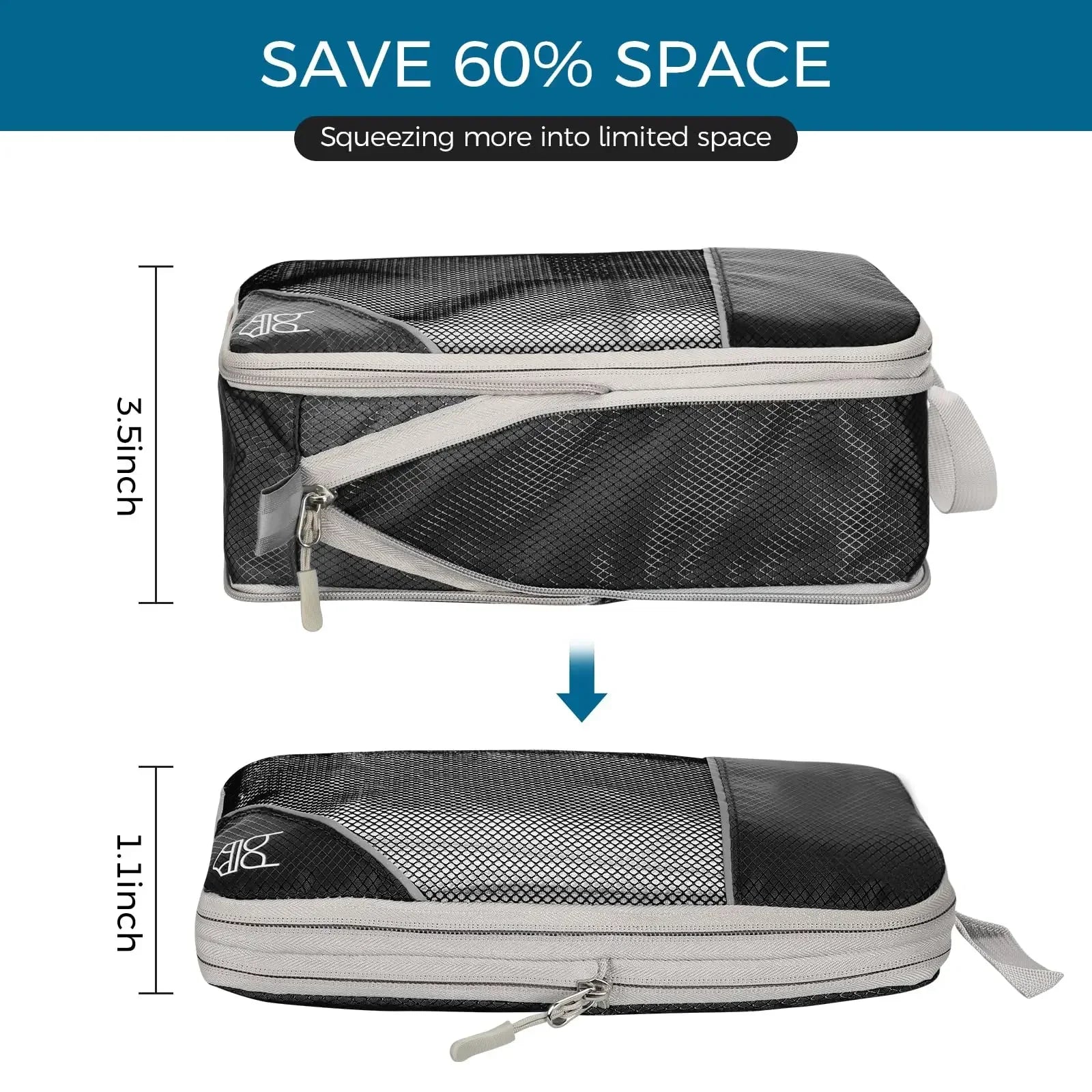 Purilite Select 5‑6 PCS Compressed Travel Packing Cubes Set – Lightweight Mesh Luggage Organizers with Shoe Bag