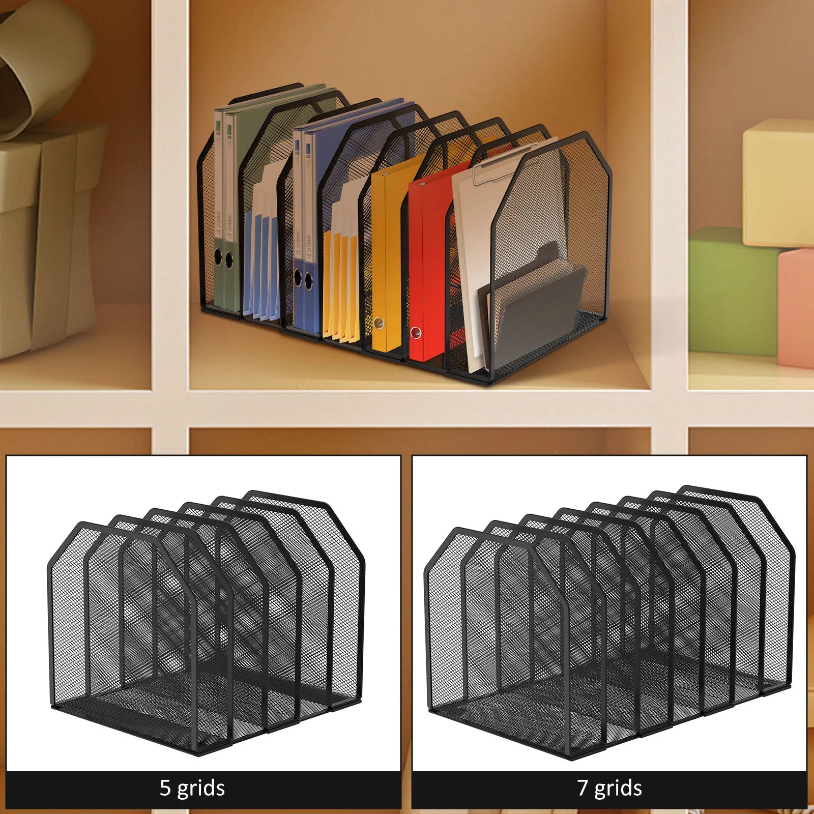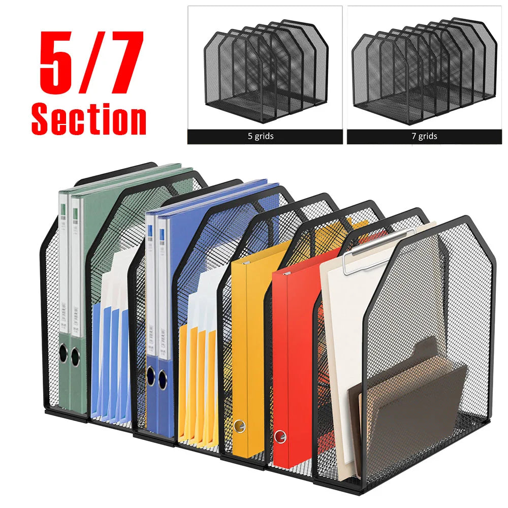 Purilite Select Metal File Rack – 5/7 Section Adjustable Mesh Desk Organizer, Standing File Holder & Storage Box for Office/Home