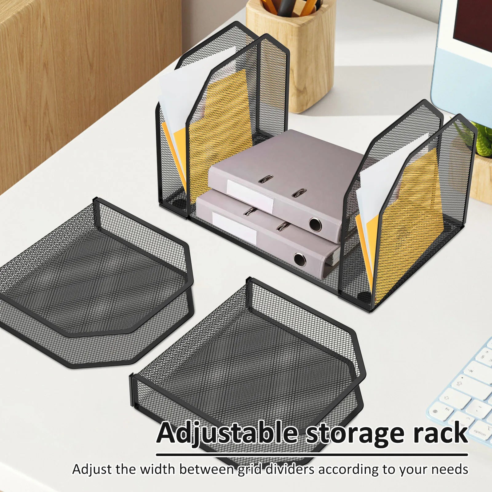 Organize your workspace with the Purilite Select Metal File Rack. Designed with 5/7 adjustable sections, this mesh desk organizer is perfect for holding files, folders, books, and office supplies. Its standing design saves space while keeping your desk neat and tidy. Durable and sturdy, it’s an excellent storage solution for office desks, study tables, or home use.