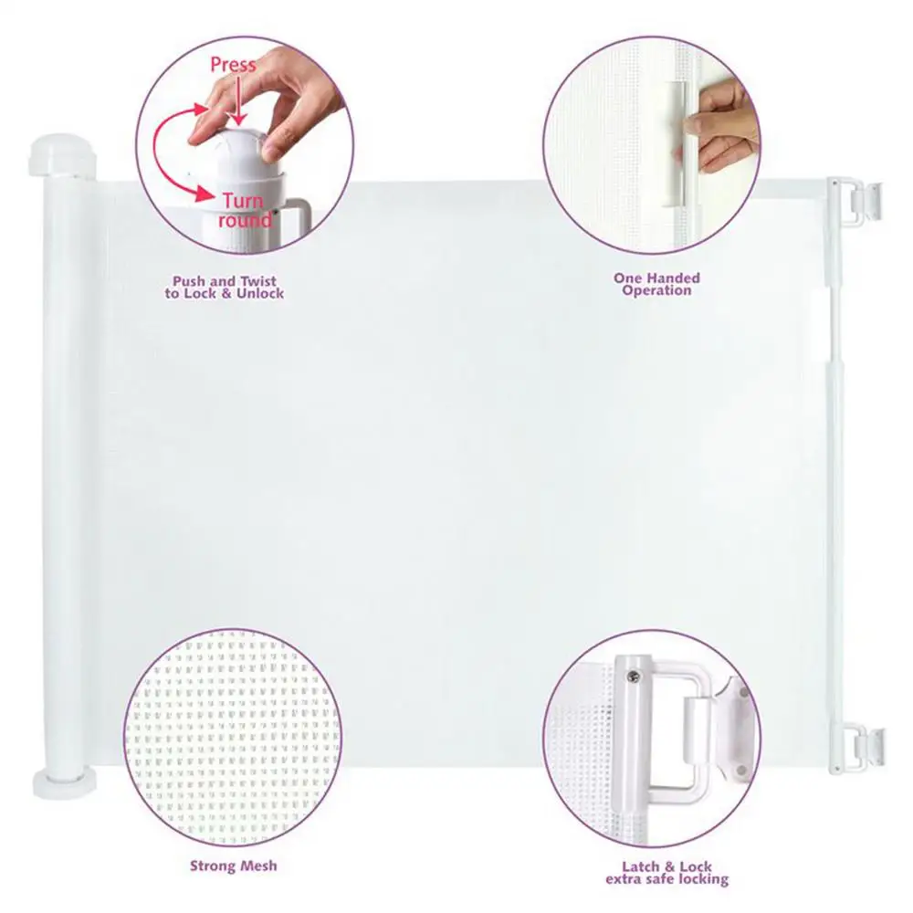 Apne ghar ko zyada safe banayein Purilite Select Retractable Baby Gate ke sath. Yeh mesh safety gate doorways, staircases, balconies aur open spaces ke liye design kiya gaya hai aur babies aur pets ke liye reliable protection provide karta hai. Is ka retractable design flexible width adjustment allow karta hai aur jab use mein na ho to zyada space nahi leta.