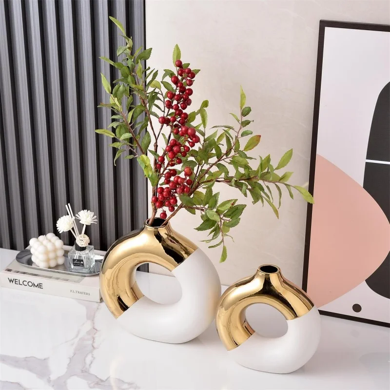 Add a refined, modern touch to your space with the Purilite Select Luxury Nordic Ceramic Flower Vase. Featuring a sleek and minimal design with golden detailing, this high-end vase blends perfectly with contemporary interiors. Whether placed on a living room table, dining area, hotel lobby, or used in weddings and festive settings, it elevates the environment with elegant charm. Perfect for holding fresh flowers, dried arrangements, or standing alone as a decorative art piece.