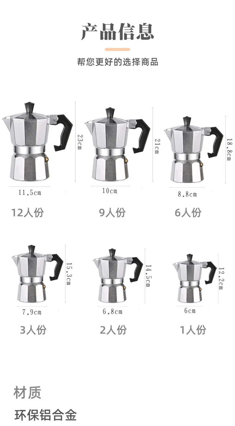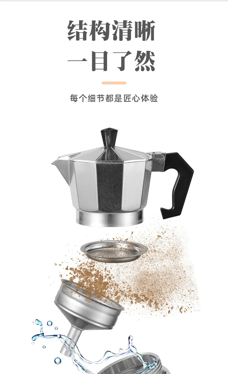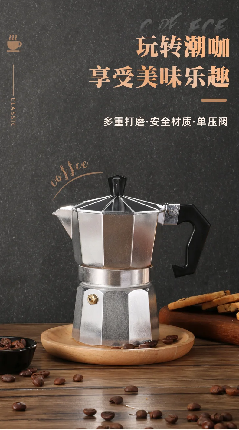 - Classic octagonal shape mein aluminum mocha pot