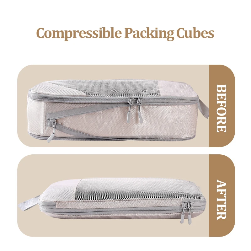 Pack smarter with the Purilite Select Compressible Packing Cubes 3-Piece Set, designed for travelers who value neat, compact, and stress-free luggage organization. Made from high-quality waterproof fabric, these packing cubes keep your clothes, undergarments, and accessories protected and neatly arranged. The dual-zipper compressible design helps reduce bulk in your suitcase, while the mesh or transparent window allows for quick identification of contents. Lightweight, foldable, and washable, Purilite Select cubes are ideal for travel, gym use, or home storage.