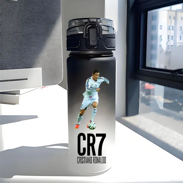 Purilite Select CR7 Football Star Straw Water Bottle | Cristiano Ronaldo Sports Cup | Large Capacity | Flip Cover | Portable Outdoor Drinking Bottle | Gift for Fans