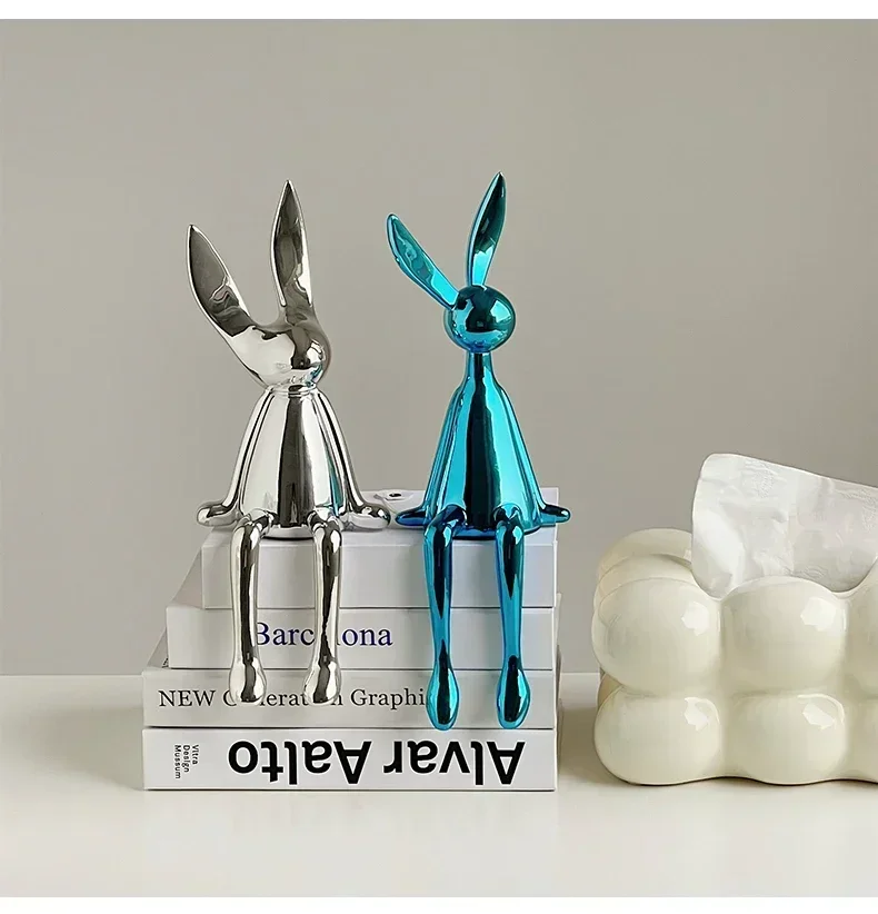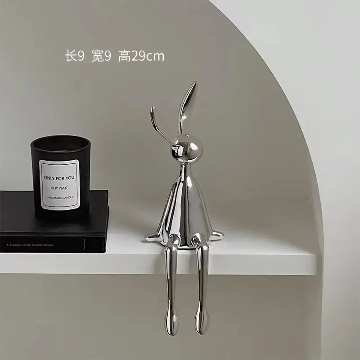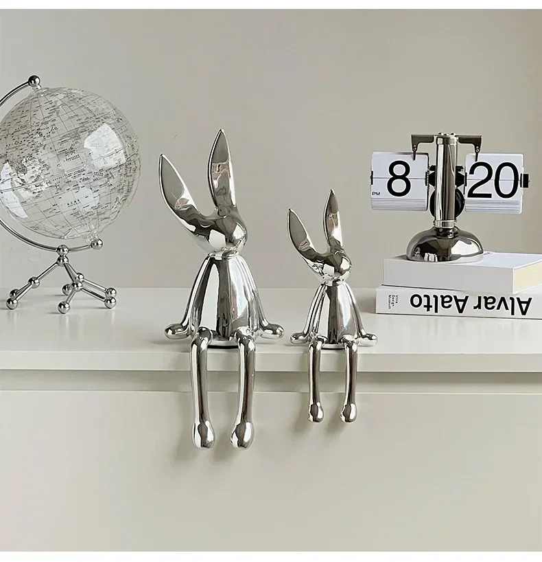 Purilite Select Creative Sitting Rabbit Figurines – Silver Luxury Sculpture for Living Room, Bookshelf & Aesthetic Kawaii Home Décor