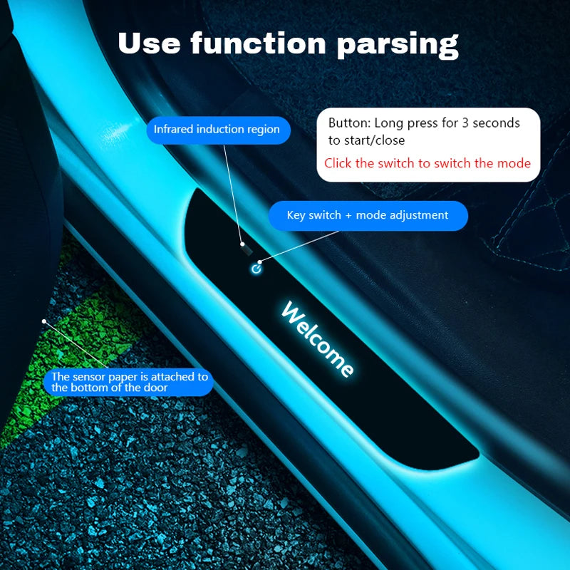 Apni car ko personal touch dein — apna naam, brand ya koi bhi custom message choose karein. Har dafa jab door open hota hai, aap ka design light ki shakal mein chamakta hai.