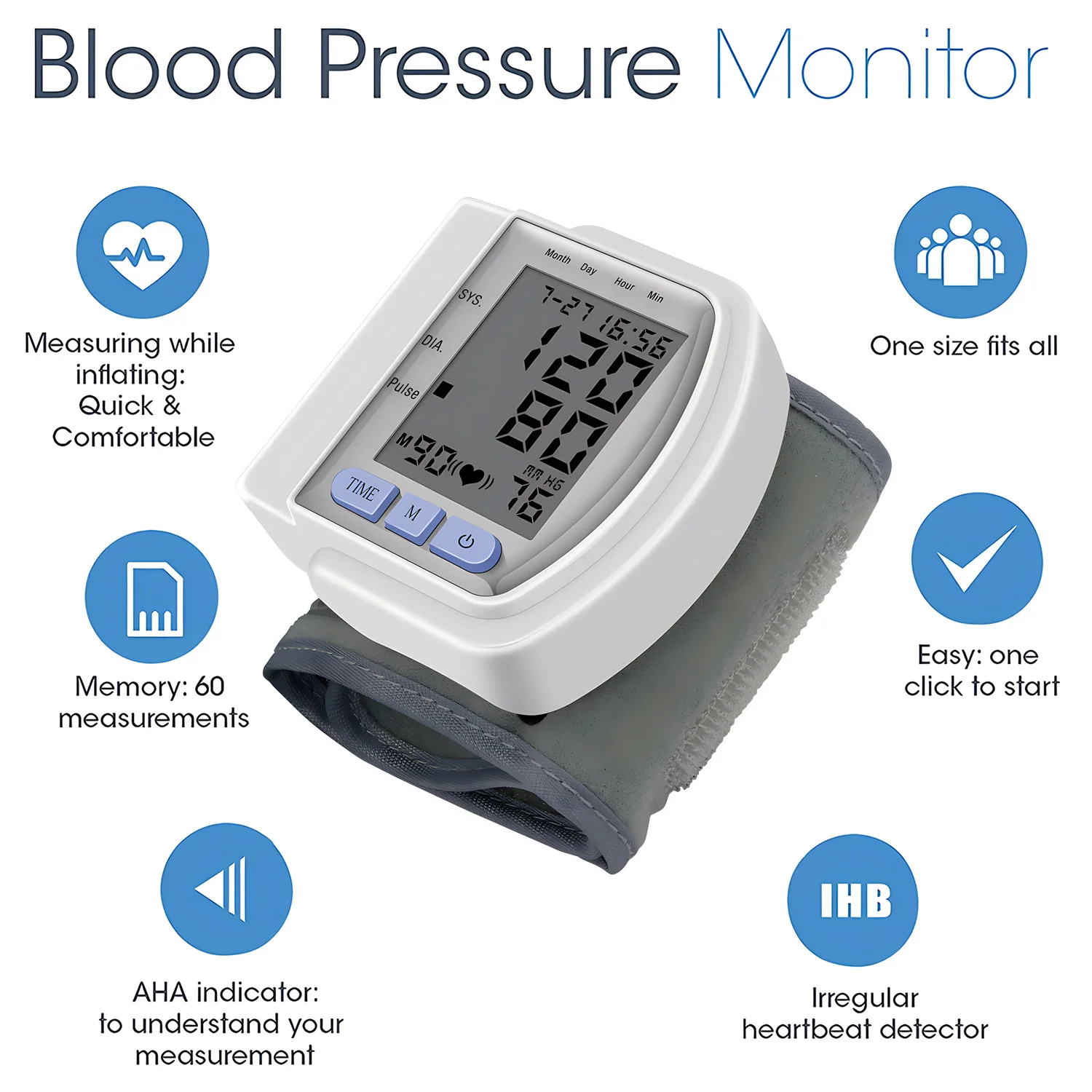 - Type: Digital Blood Pressure Monitor (Wrist-based)