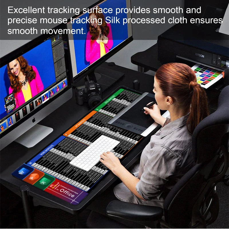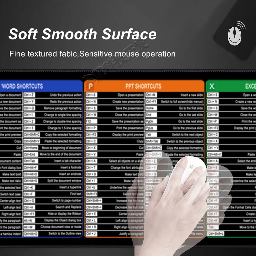 Work smarter with the Purilite Select Excel Shortcuts Mouse Pad, designed as a large extended desk mat for your keyboard and mouse. Featuring printed Excel shortcut keys, this mat makes working on spreadsheets faster and easier. The stitched edge prevents fraying, while the non-slip base keeps the pad securely in place. Perfect for office, study, and home computer setups, it combines functionality, durability, and comfort in one.