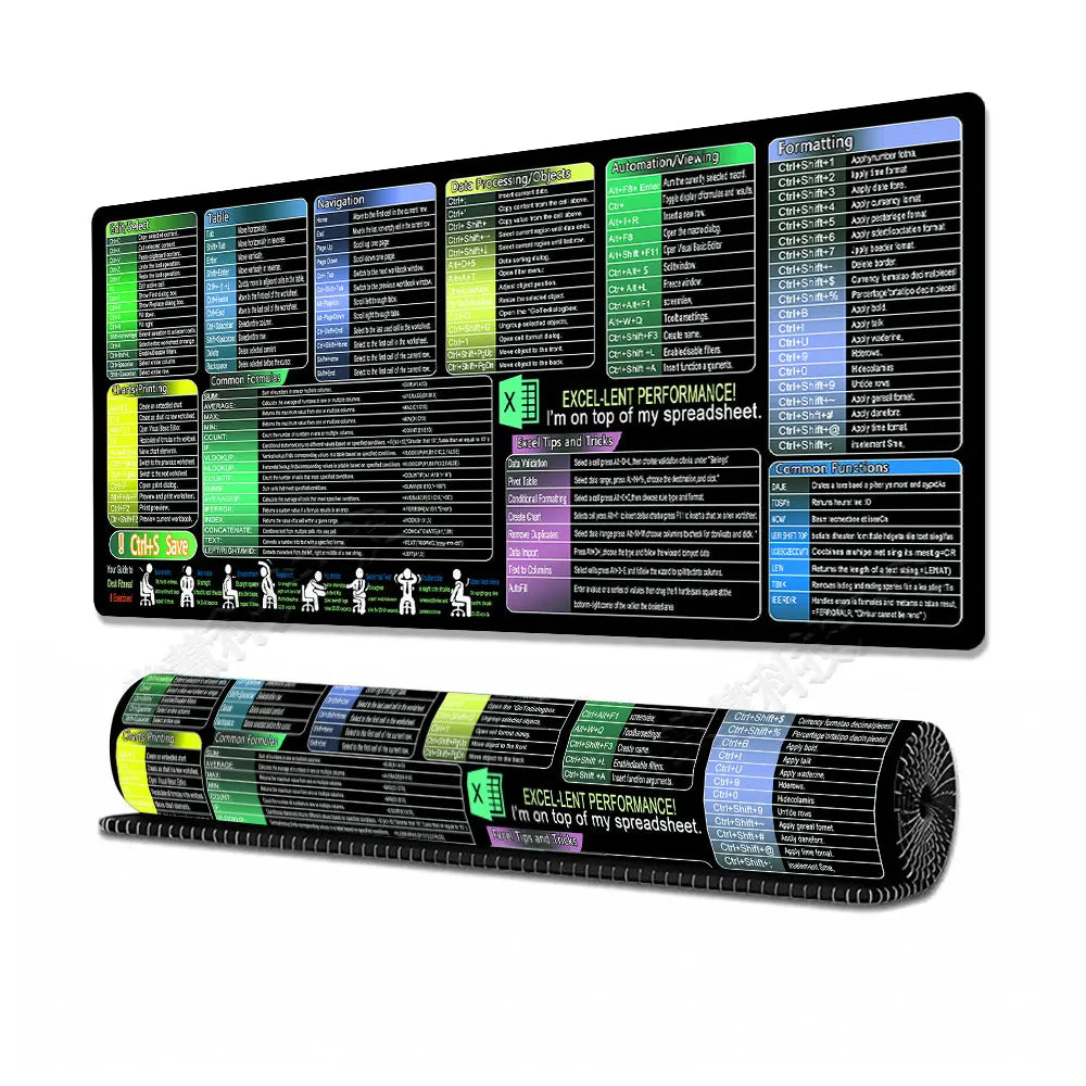Purilite Select Excel Shortcuts Mouse Pad – Large Extended Desk Mat with Stitched Edge & Non-Slip Base for Office & Computer Use
