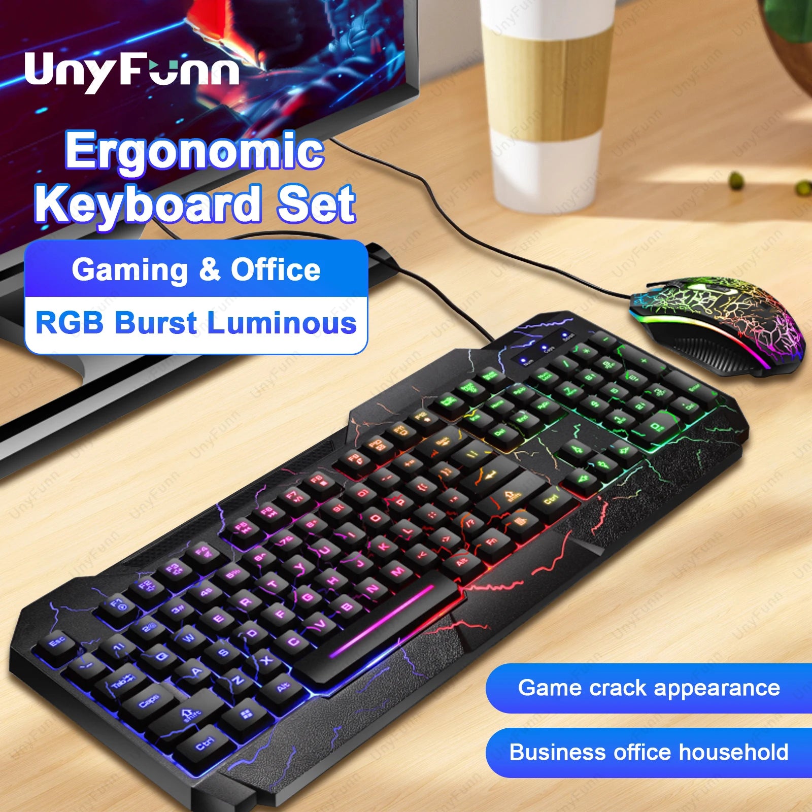 Purilite Select Ergonomic Gaming Keyboard & Mouse Set – Crack Rainbow Glow Backlight Luminous Membrane Gaming Peripherals