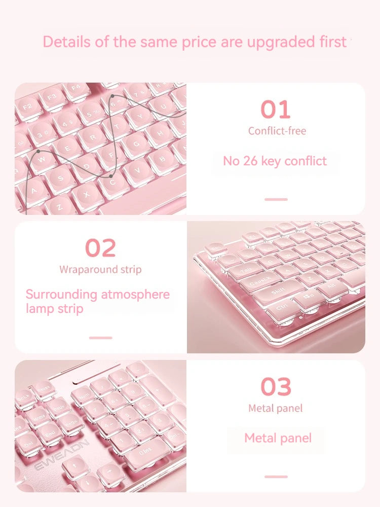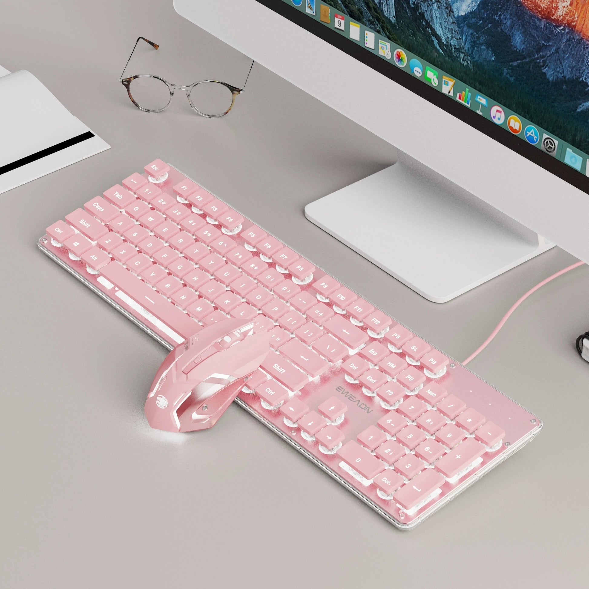 The Purilite Select X7 Silent Keyboard and Mouse Set is designed with style and comfort in mind. Its elegant pink color makes it perfect for female office users who want both beauty and performance. The mechanical touch keys provide smooth typing, while the silent design ensures noise-free working. A durable, wireless combo that adds charm to your workspace.