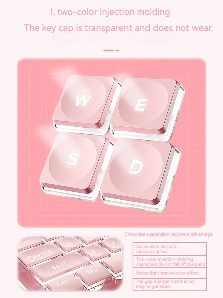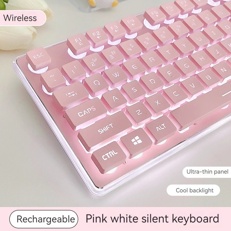 Purilite Select X7 Silent Keyboard and Mouse Set – Pink Wireless Combo for Office, Comfortable & Durable with Mechanical Touch