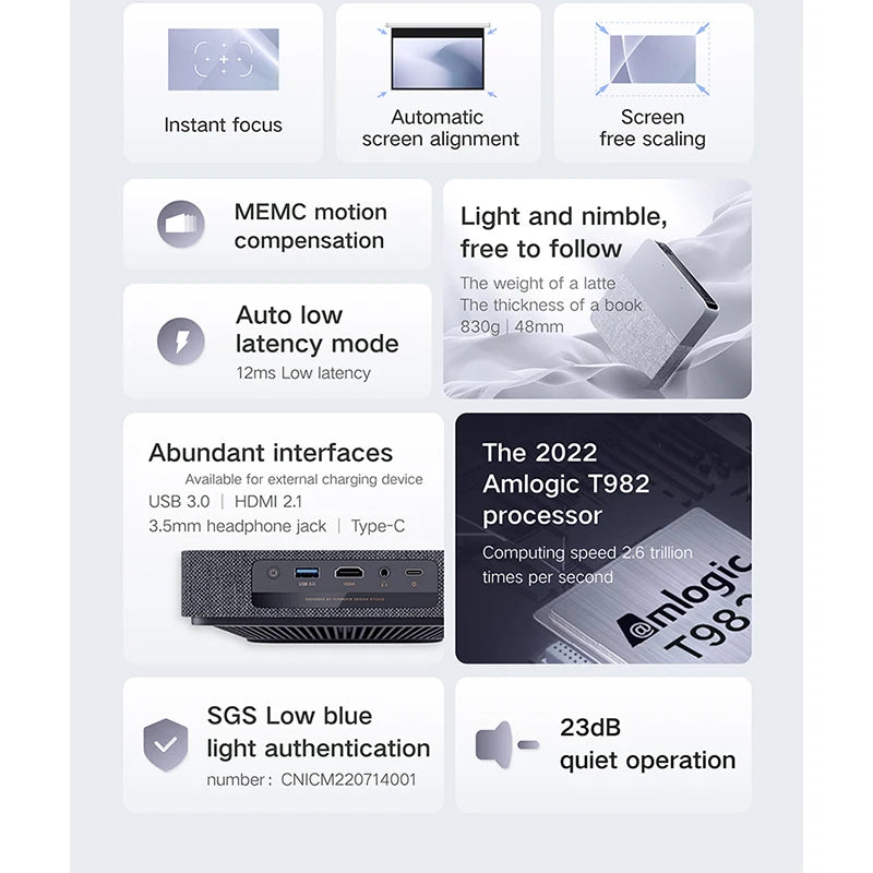 Bring high-definition cinema to your home with the Purilite Select Formovie S5 Laser Projector. Delivering FHD 1080P resolution with 1100ANSI lumens brightness, this portable mini beamer supports ALPD technology and Bluetooth connectivity for versatile use. Perfect for home smart theaters or outdoor cinema nights, it provides clear, vibrant visuals and immersive sound in a compact design.