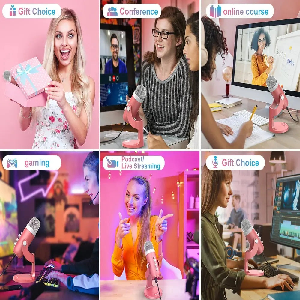 The Purilite Select Pink USB Condenser Microphone is a premium-quality studio microphone designed for PC, Mac, laptops, smartphones, tablets, and gaming consoles. With a cardioid polar pattern, it captures your voice clearly while reducing unwanted background noise—perfect for gaming, podcasting, streaming, Zoom meetings, voice-overs, and professional studio recording.