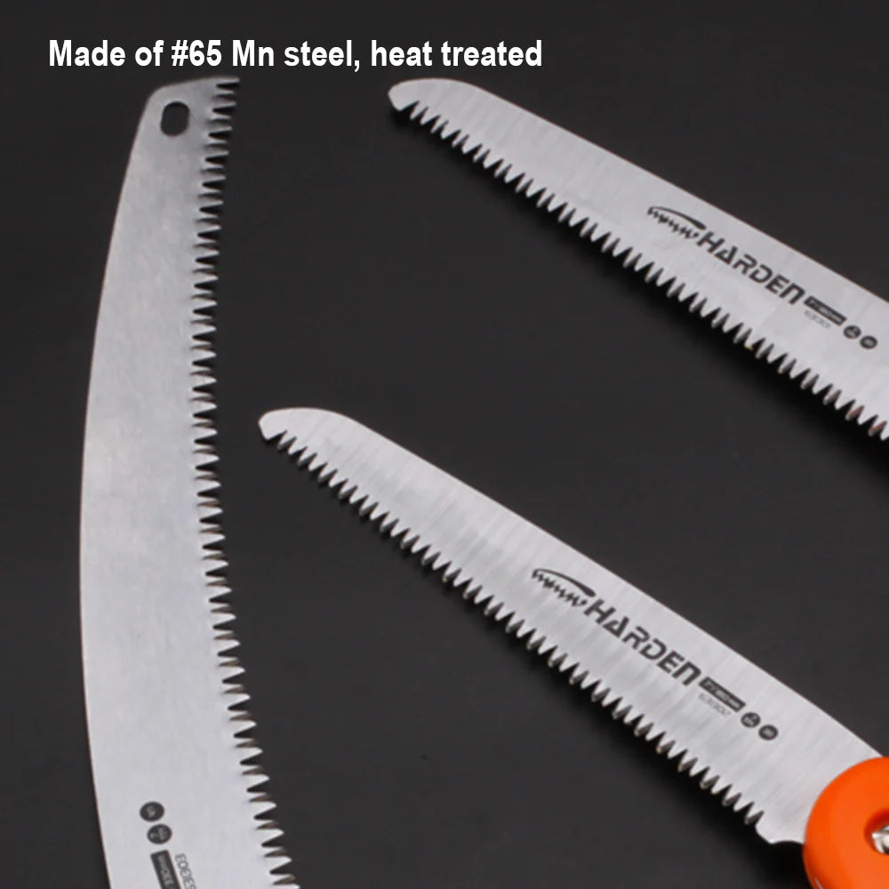 Power through wood and branches with the Harden Bend Saw 330MM, expertly engineered for clean, efficient cutting. Designed with heat-treated #1065 Mn steel and a soft, ergonomic handle, this saw is your go-to companion for gardening, woodworking, and general-purpose cutting tasks.
