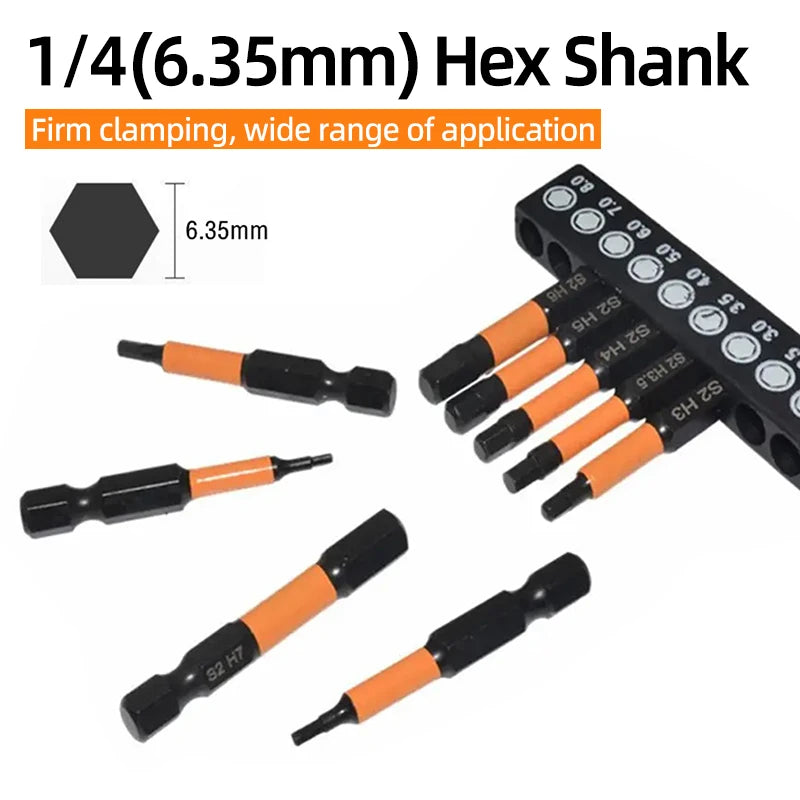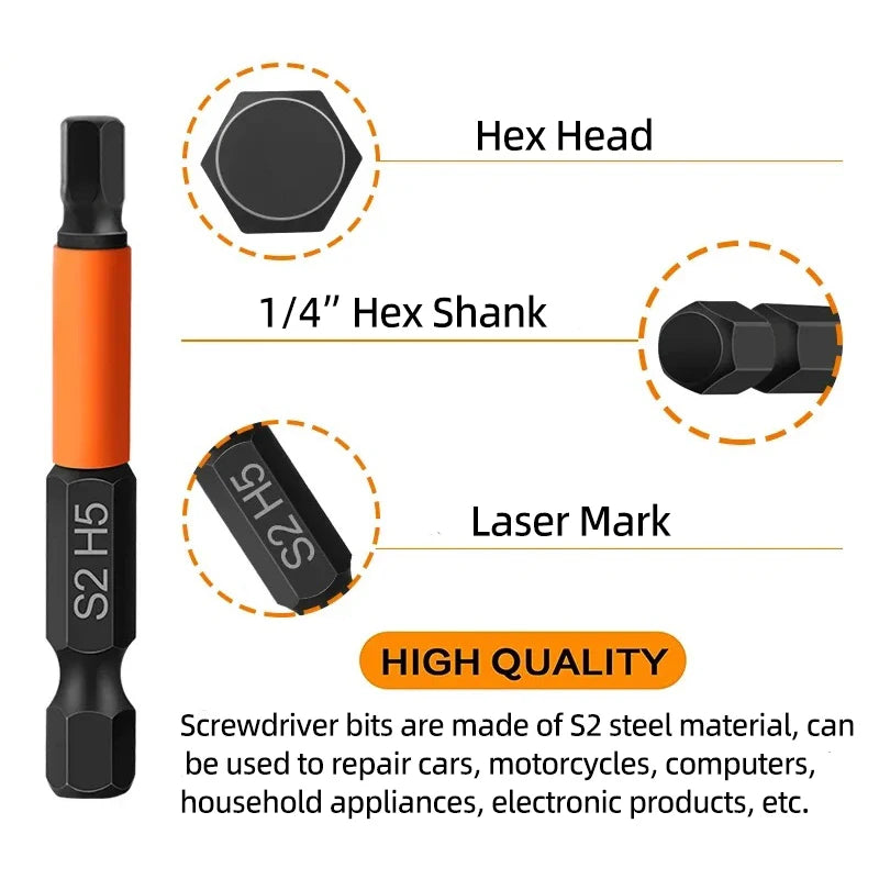 Easily handle screws and bolts with the Purilite Select Hex Head Allen Wrench Screwdriver Bit Set. Featuring SAE and metric sizes with 1/4" hex shank magnetic bits made from durable S2 steel, this set is perfect for use with electric drills or manual drivers. Compact and precise, it’s ideal for DIY, household, and professional maintenance tasks.