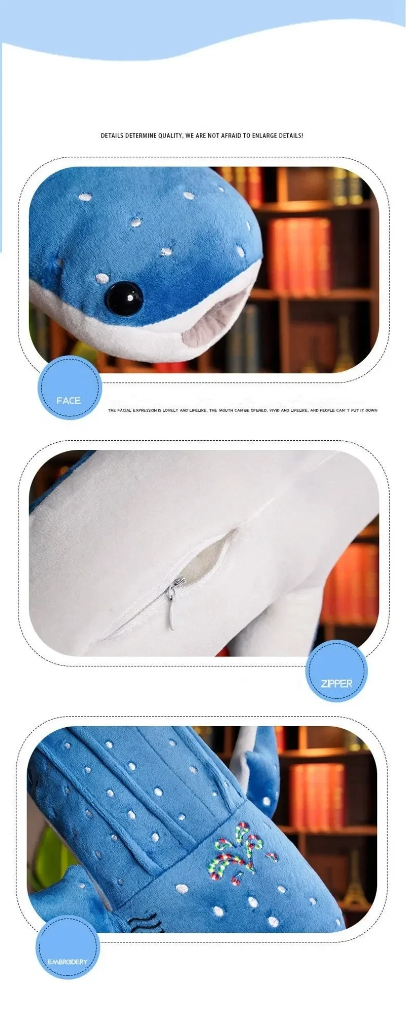 The Large Whale Shark Body Pillow is a long, soft, and adorable plush cushion designed for maximum comfort and decoration. Crafted with smooth polyester fabric and filled with high-quality PP cotton, this whale shark plush pillow provides excellent support for sleeping, lounging, or relaxing on the sofa. Its cute marine animal design makes it a perfect decorative cushion as well as a thoughtful gift for kids, teens, and plush lovers.