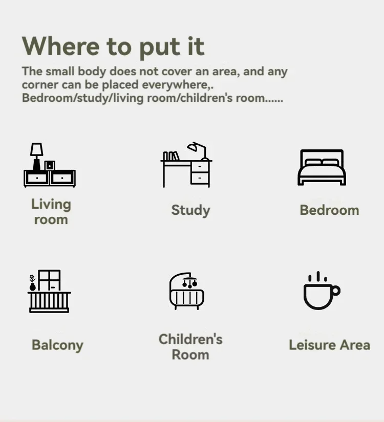 - Compact size – perfect for bedrooms, living rooms, and small spaces