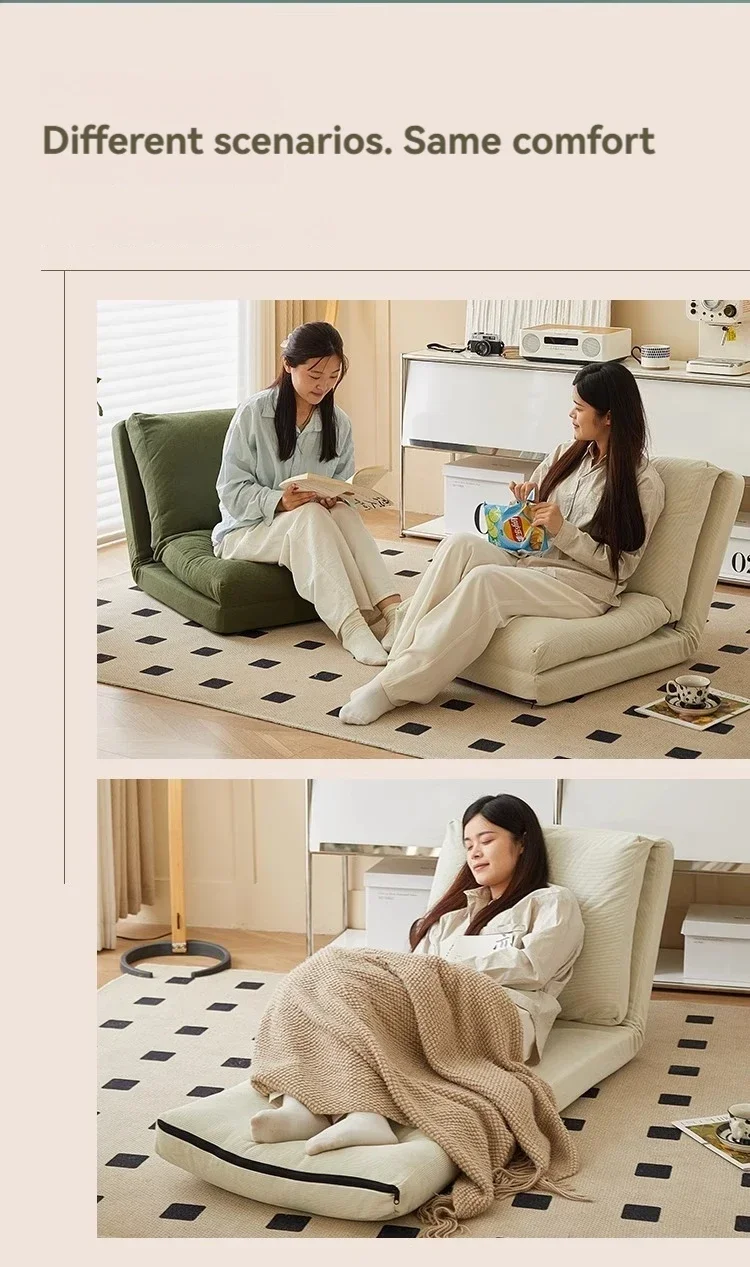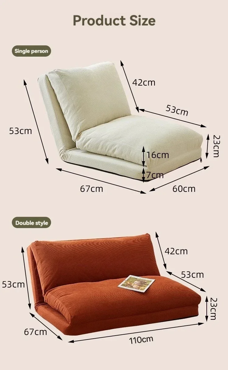 The adjustable reclining backrest lets you find your perfect angle for reading, relaxing, or napping. Its removable and washable cover makes cleaning easy, ensuring long-term freshness and usability. Lightweight yet sturdy, this foldable small sofa chair saves space while adding style and function to any room.