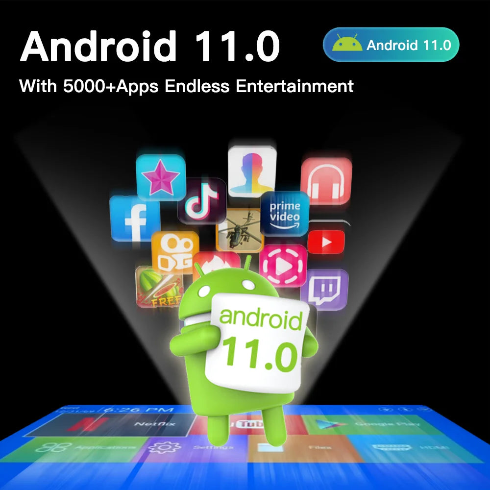 Andriod 11.0 Supported 5000+ APPs downloading including video, game, audio and entertainments for fun.