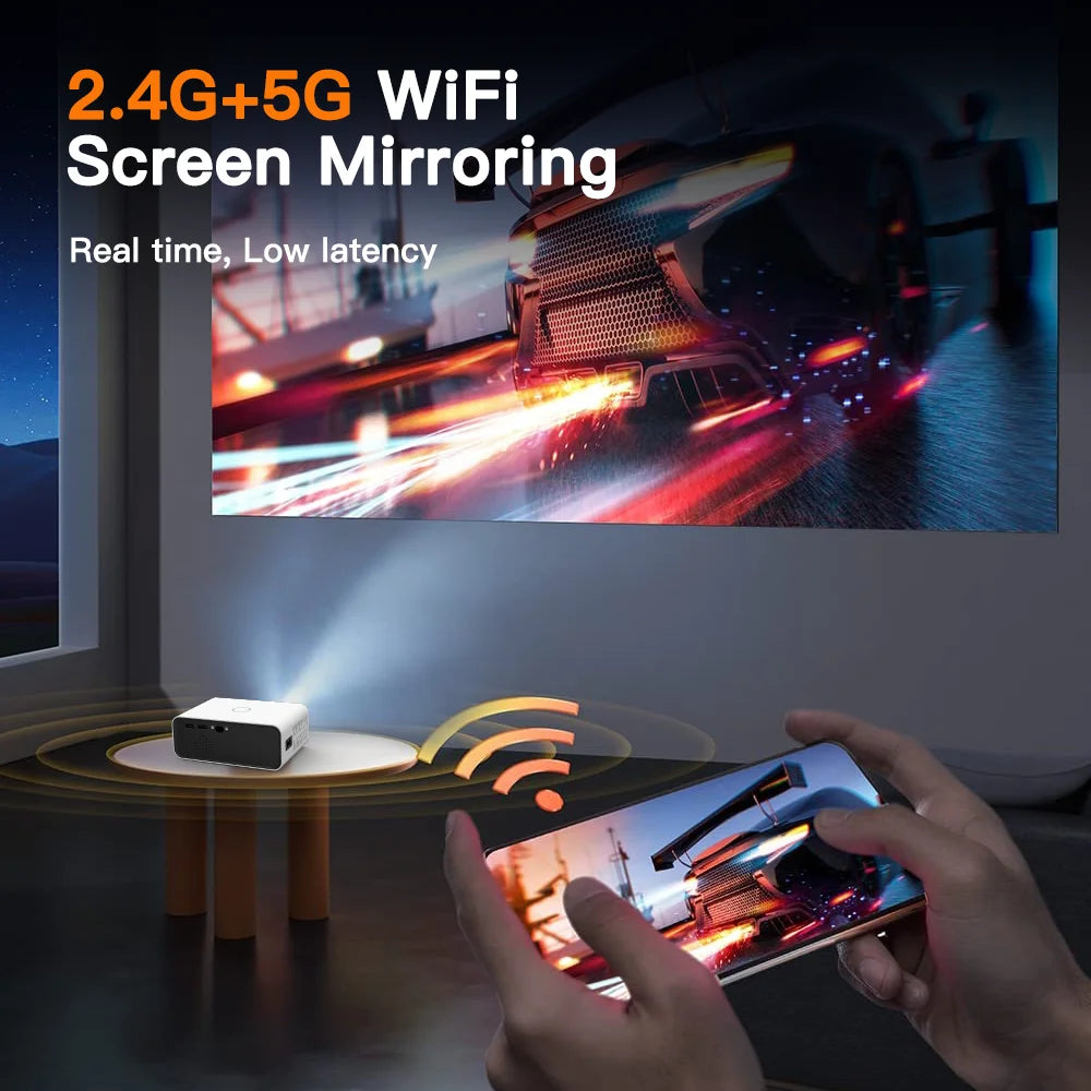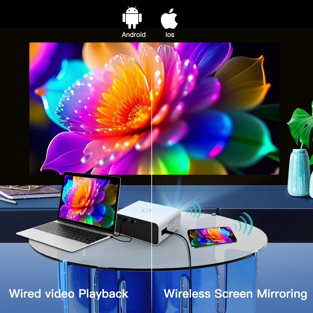 Adopted ultra-fast 2.4G+5G dual-band wifi6 ,L012C home-use projector transmits smoother and lag free online video streaming experience. It has wider coverage, which allow connected with your phone to sync your phone screen easily within seconds.