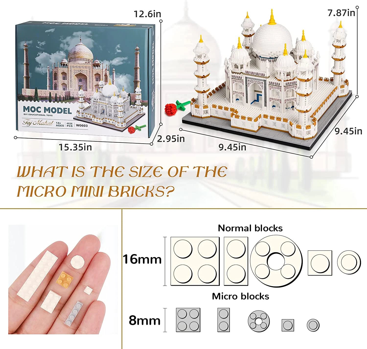 Purilite Select MOC City Mini Block – World Famous Architecture Miniature Model Taj Mahal Building Creative Children’s Toy
