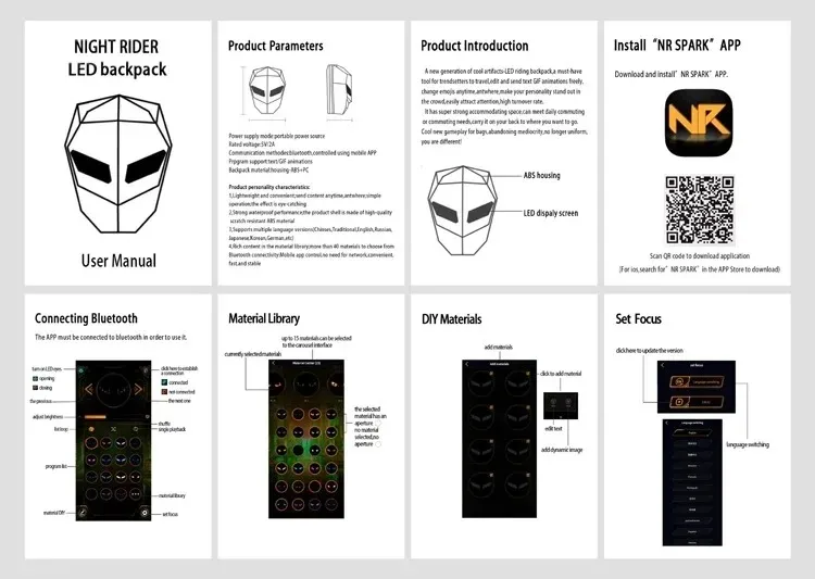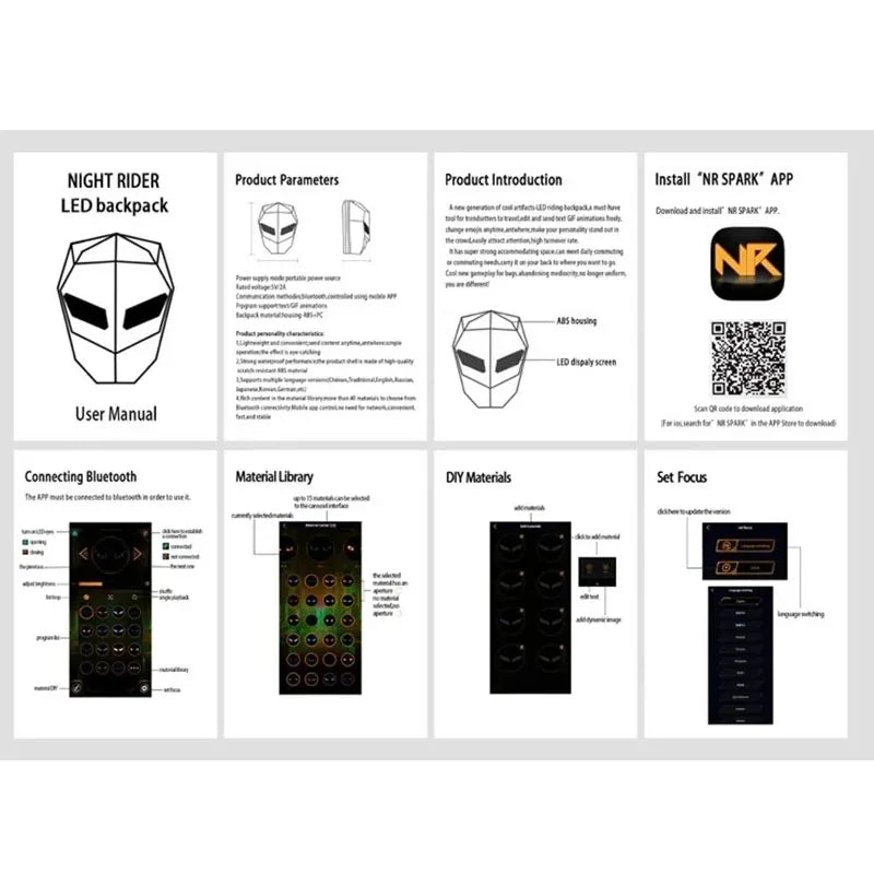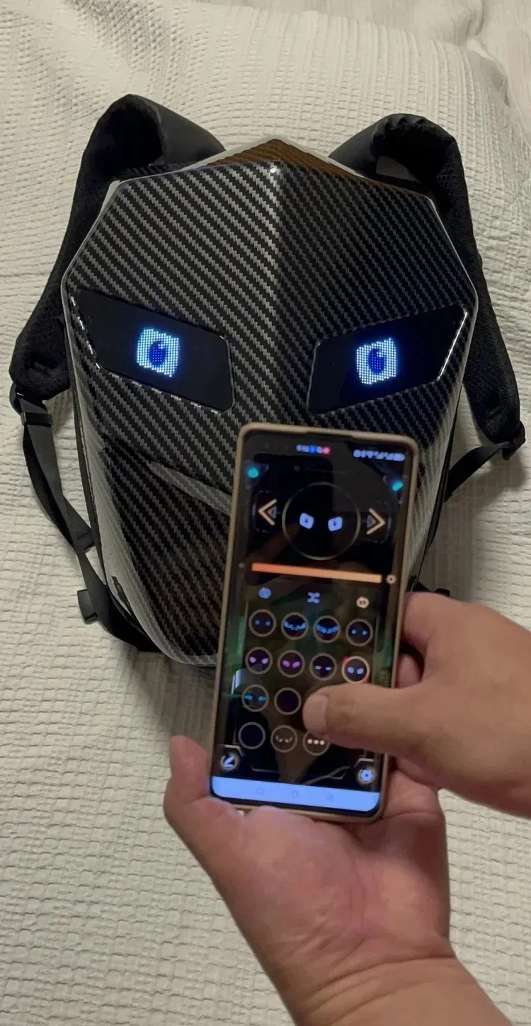 Front par maujood LED light display ko aap mobile control system ke zariye apni marzi ke mutabiq customize kar sakte hain. Yeh feature backpack ko unique look deta hai aur low-light conditions mein visibility bhi behtar karta hai. Is ka structured design helmet, laptop aur rozana ke saman ke liye kafi jagah provide karta hai.