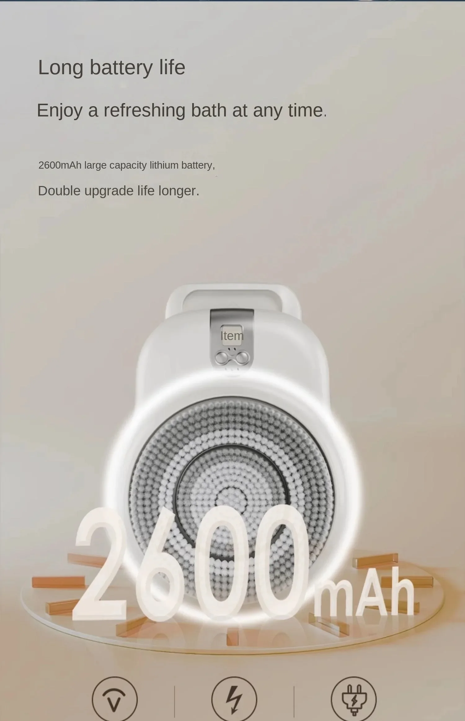 Its wall-mounted design keeps the bathroom organized while allowing easy access during bathing. Powered by a rechargeable system, this bathing machine offers cordless convenience and smooth operation. Suitable for everyday use, it helps improve bathing comfort while maintaining a clean and modern bathroom setup.