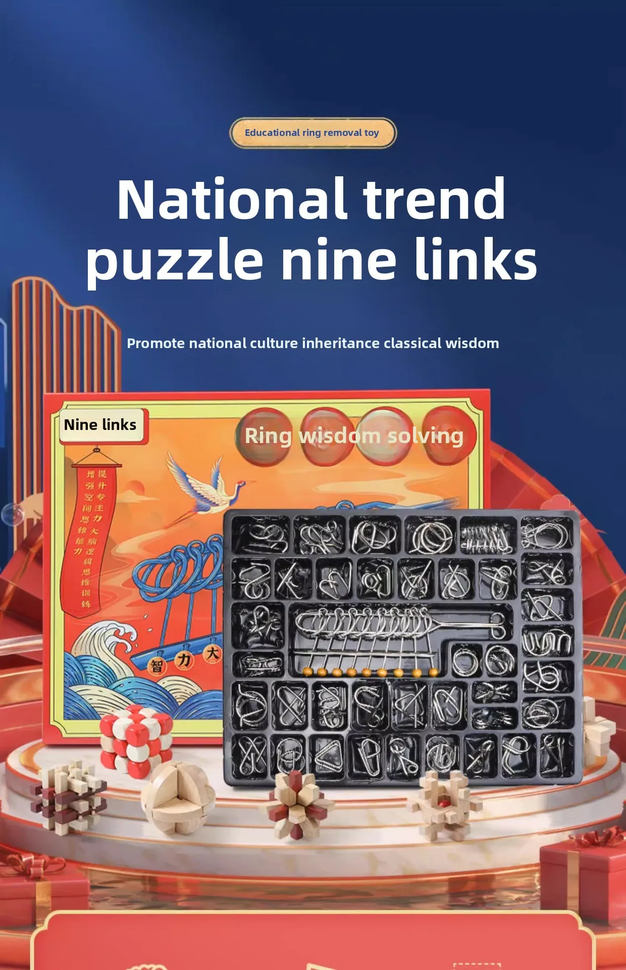 SEO keywords: Nine-Link Luban Lock, Purilite Select educational toy, intelligent buckle puzzle, brain training set, problem-solving toy for kids, early learning educational game, cognitive development puzzle, primary school learning toy, hands-on activity set, logic and strategy toy.