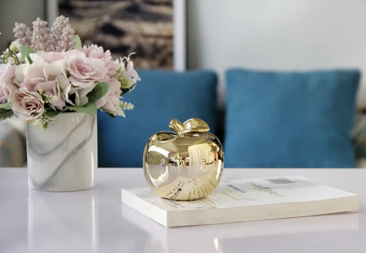 Purilite Select Gold Apple Ceramic Statue – Luxury Fruit Figurine for Living & Dining Room Decor, Creative Tabletop Ornament