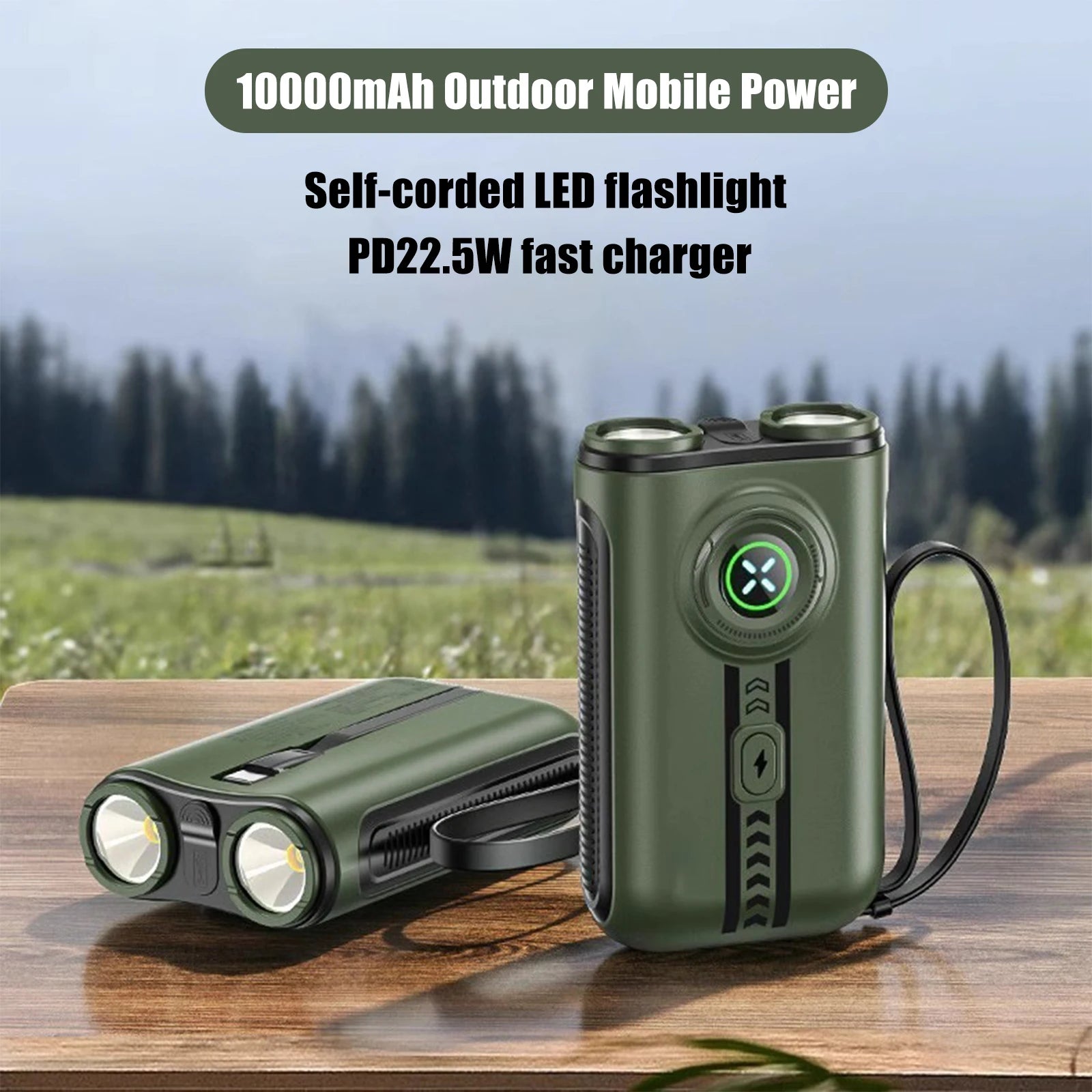 Purilite Select Outdoor Portable Power Bank Flashlight 2-in-1 – 22.5W Fast Charging 10000mAh with Built-in Data Cable