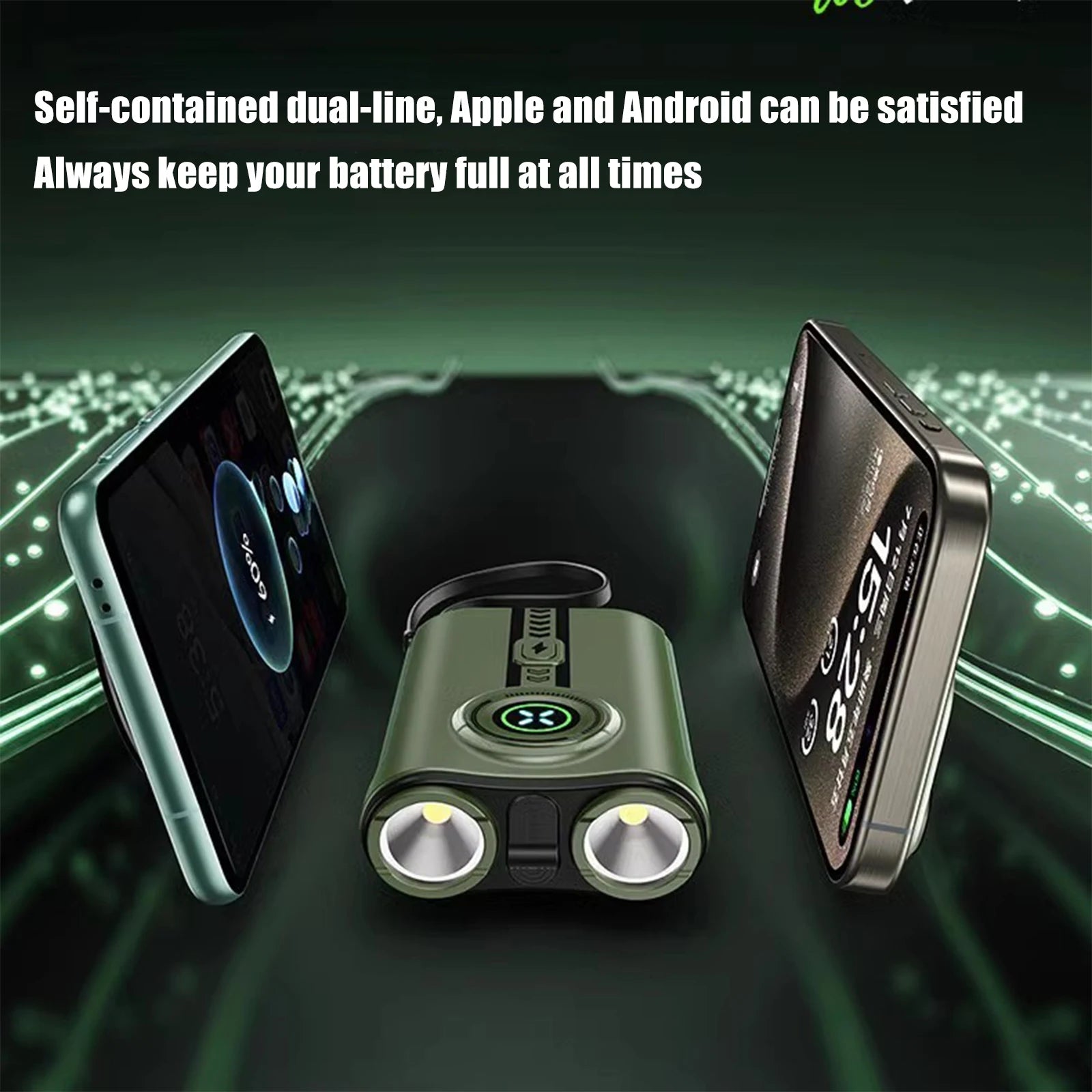 - Features: Built-in Data Cable, Flashlight, Portable