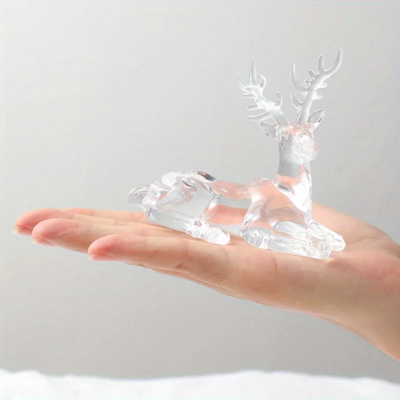 Purilite Select Plastic Crystal Deer Figurines – Transparent Reindeer Desktop Ornament – Christmas Decoration & Home Display Accessory