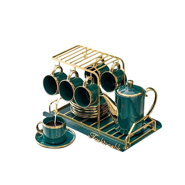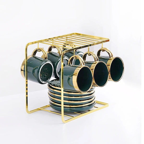 | Set Includes | 6 mugs, 6 saucers, 1 golden stand |