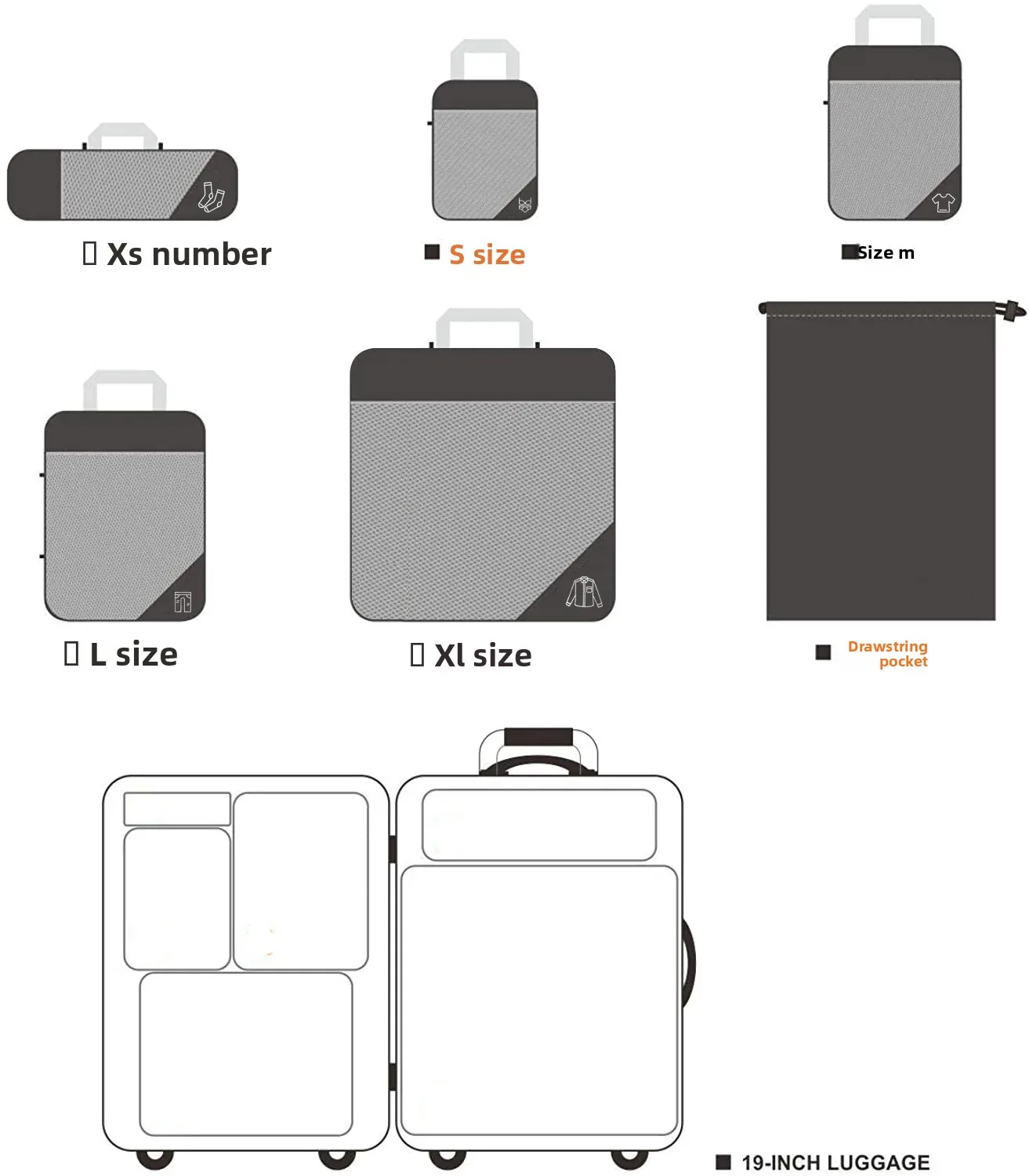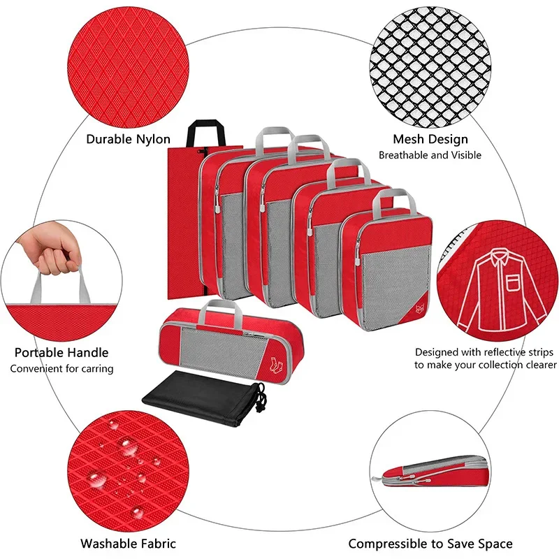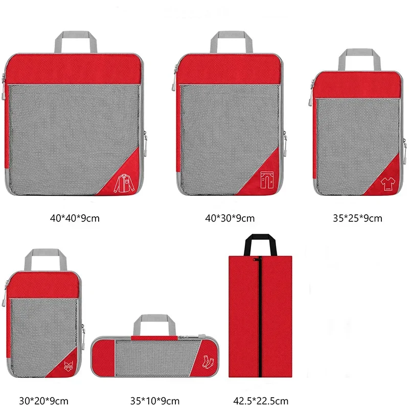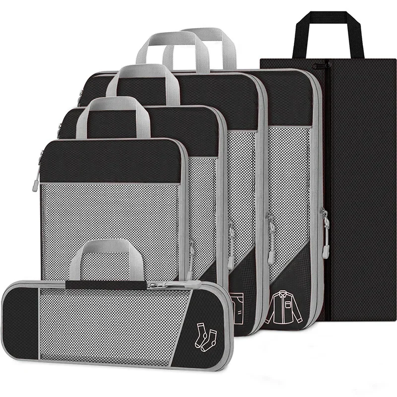 - Set of 6 pieces in assorted sizes (e.g. large, medium, small, plus possibly a shoe bag or toiletry pouch)