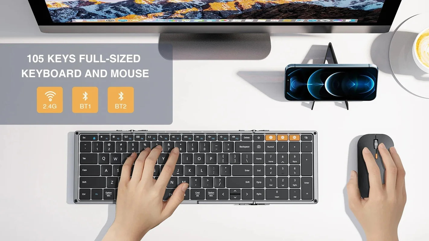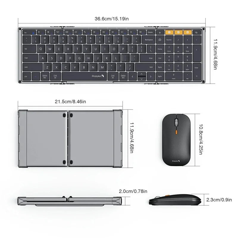 Purilite Select Foldable Keyboard and Mouse XKM01 Combo for Business Travel with 2.4G + Dual Bluetooth, Portable for Laptop, iPads & Tablets
