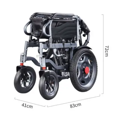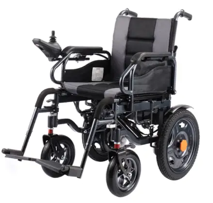 Yeh wheelchair heavier users aur rozana extended use ke liye ideal hai. 130 kg tak ka weight support karti hai aur aik charge par 20 km tak ka safar tay karti hai, maximum speed 6 km/h tak. Pneumatic rear wheels shock ko absorb karte hain aur solid front casters maneuverability improve karte hain.
