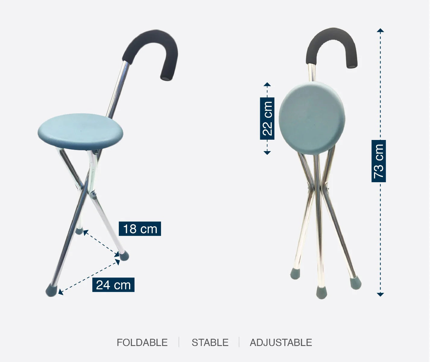 - Dual Function: Works as both a walking stick and a temporary seat