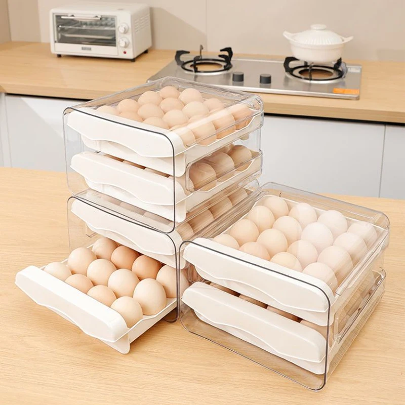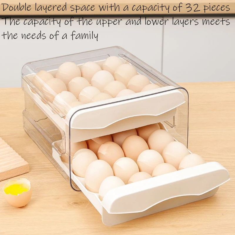 Purilite Select Refrigerator Drawer Style Egg Storage Rack – Transparent Large Capacity Box Holds 32 Eggs, Family-Sized Organizer