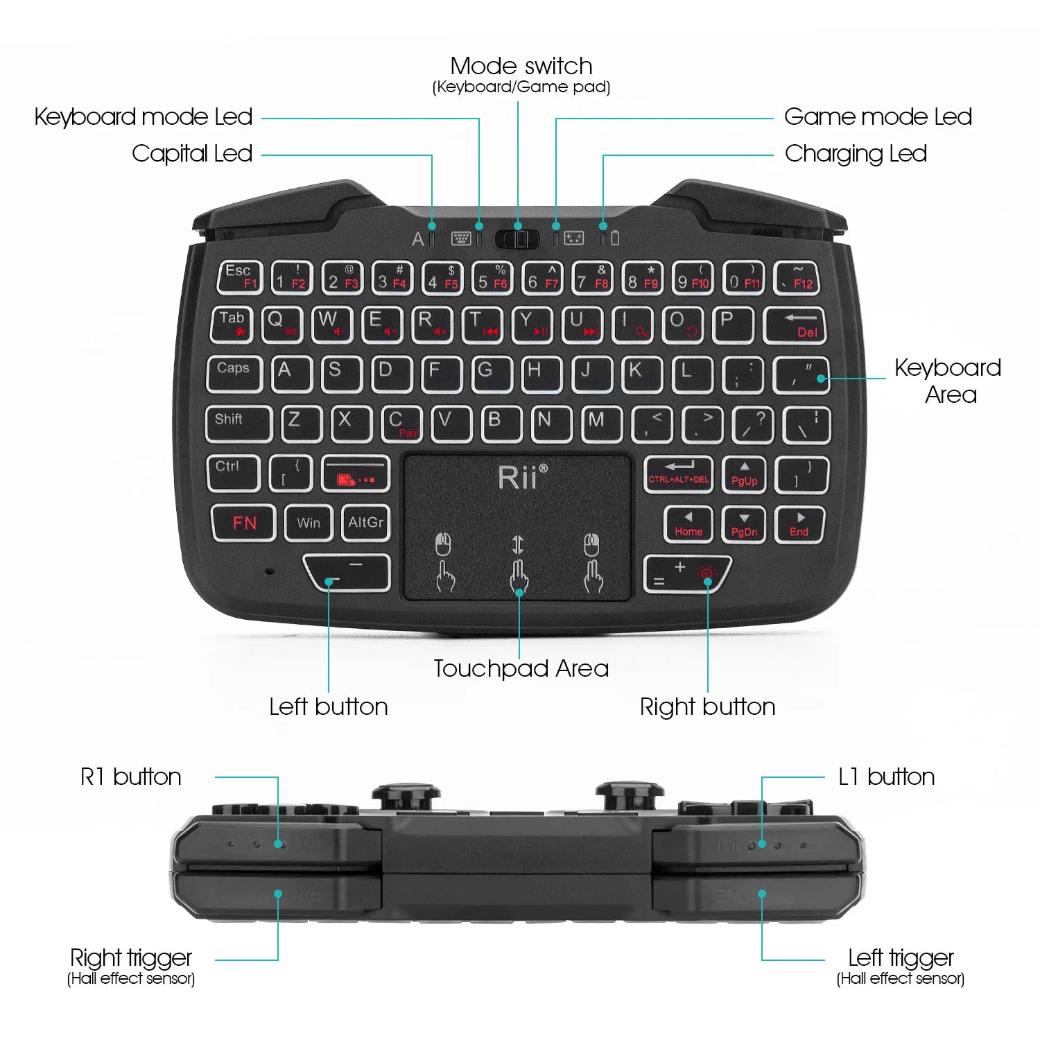 Purilite Select RK707 2.4GHz Wireless Portable Game Controller Keyboard Mouse Combo with Turbo Function for PC, Raspberry Pi2, Android TV & Google TV