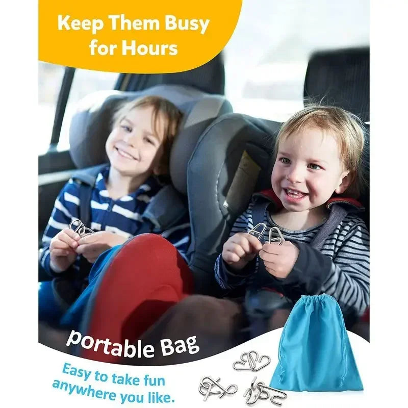 ��[Puzzlees de metal de alta calidad]Para los niños, nuestros rompecabezas de alambre metálico prestan más atención a la calidad, por lo que nuestro juguete IQ utiliza un proceso de formación integral para garantizar que los acertijos queden suaves y no lastimen las manos.Actualizamos nuestros materiales, utilizando tres capas de niquelado para evitar la oxidación o la falta de forma.