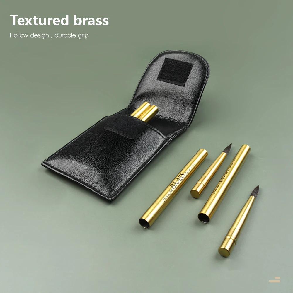 Purilite Select 4pcs Brass Travel Pen Portable Divisible Watercolor Brush Set with PU Bag – Ideal for Painting & Nail Art